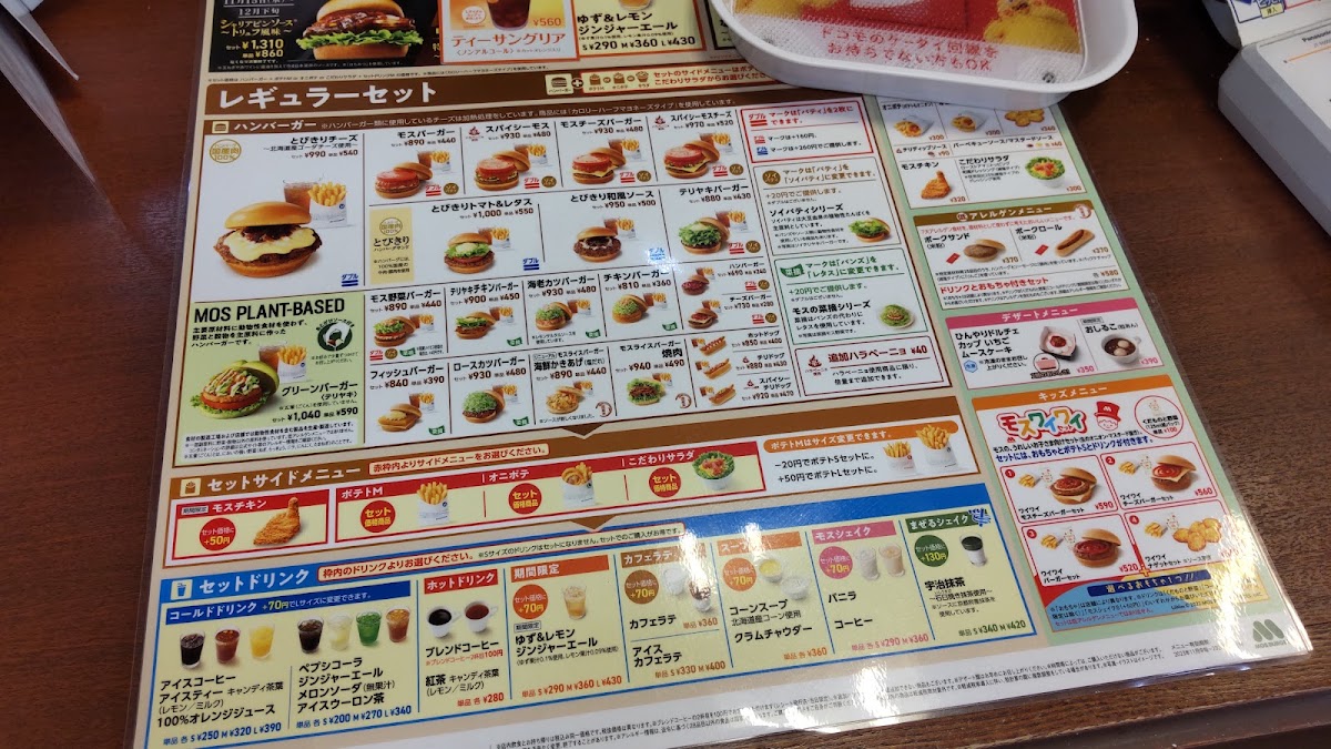 The menu at Mos Burger Yamato offers a delightful range of flavorful options that will satisfy a variety of tastes. For burger lovers, the standout dish is the モス野菜バーガーポテト sセット, a refreshing vegetable-packed burger served with a side of crispy fries. The seasonal ビーフかつバーガー 期間限定 brings a unique twist to the traditional beef patty, featuring a breaded cutlet for added crunch and flavor. For those craving something lighter, the フィッシュバーガー オニオン多め is a great choice, with a perfectly fried fish fillet topped with extra onions for an extra punch of flavor. To top it all off, their drink menu features the 新生 獺祭 混ぜるシェイク, a specialty shake that combines smooth, creamy texture with a distinct twist of flavor. The menu’s variety, from hearty burgers to refreshing shakes, makes Mos Burger Yamato a great stop for any meal.